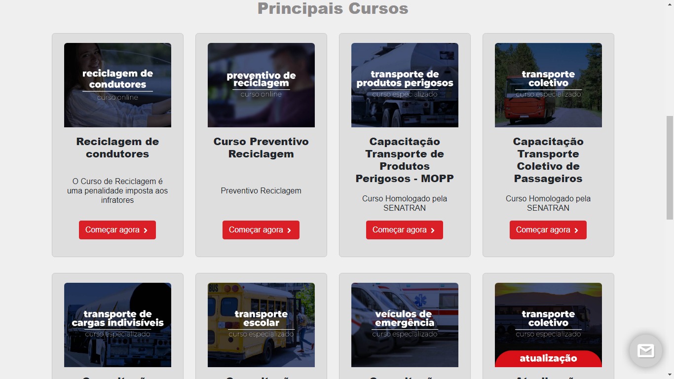 Cursos livres como direção defensiva e primeiros socorros também estão disponíveis.